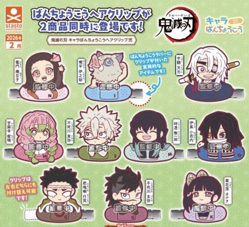 - 鬼滅の刃 キャラばんちょうこう ヘアクリップ壱【2026年2月発売】- 2025/10/27 - 発売日 2026年2月 メーカー スタンド・ストーンズ 価格 300円 ラインナップ ・竈門炭治郎 ・我妻善逸 ・嘴平伊之助 ・胡蝶しのぶ ・愈史郎 ・狛治 ・恋雪 ・猗窩座 ・獪岳 ・童磨 種類 ...