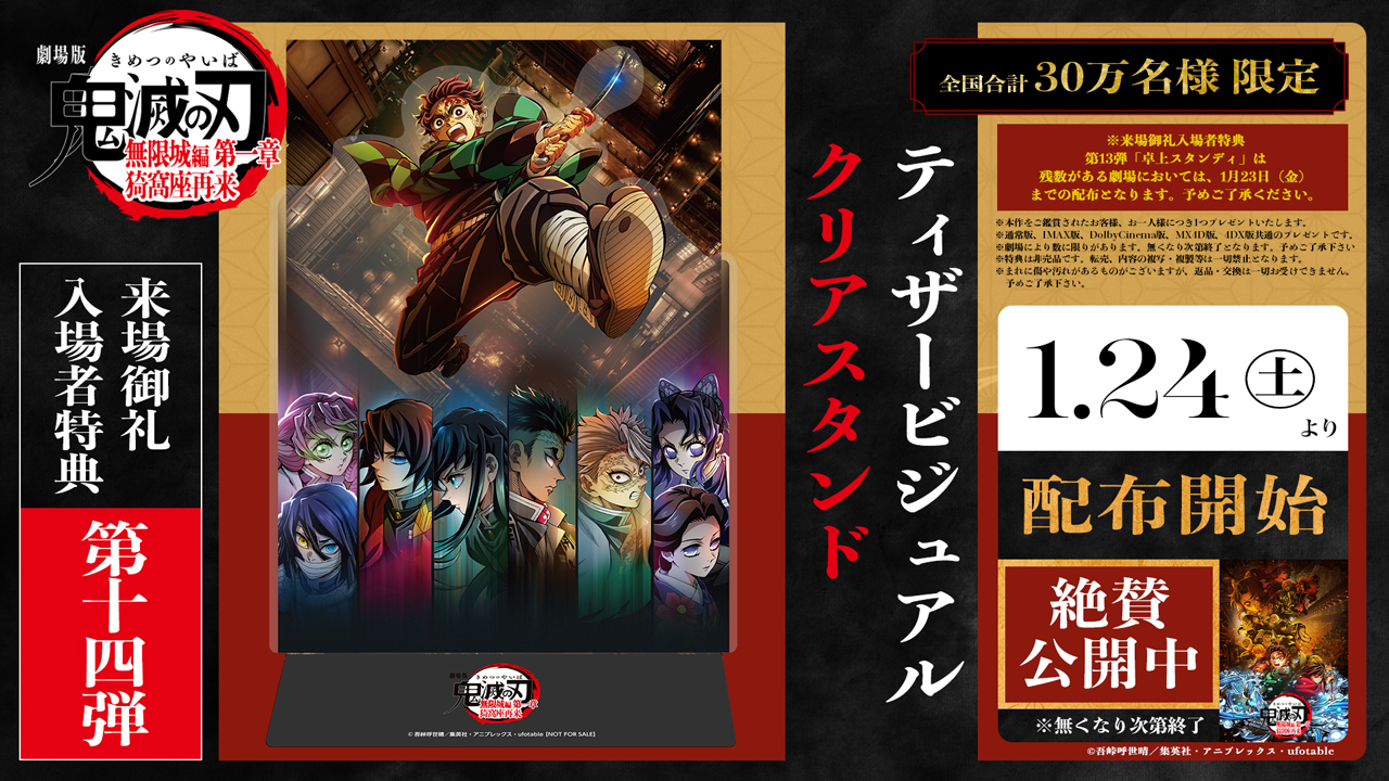 | 2月6日(金) | 劇場版「鬼滅の刃」無限城編 第一章 猗窩座再来 第2弾 IMAX限定の入場者特典 「IMAXビジュアル イラストボード」 全国10万名様限定で配布開始! | 詳細ページ |